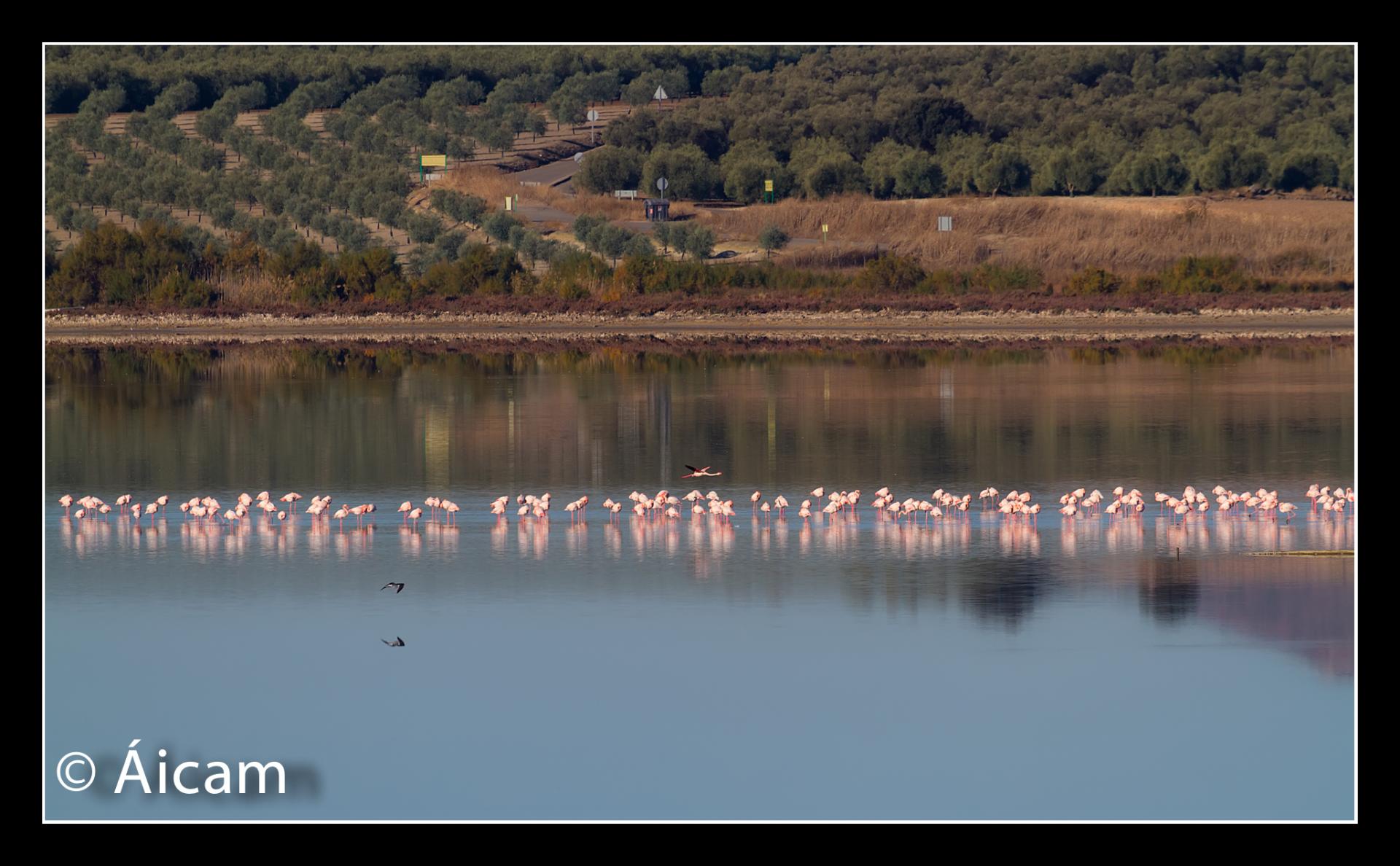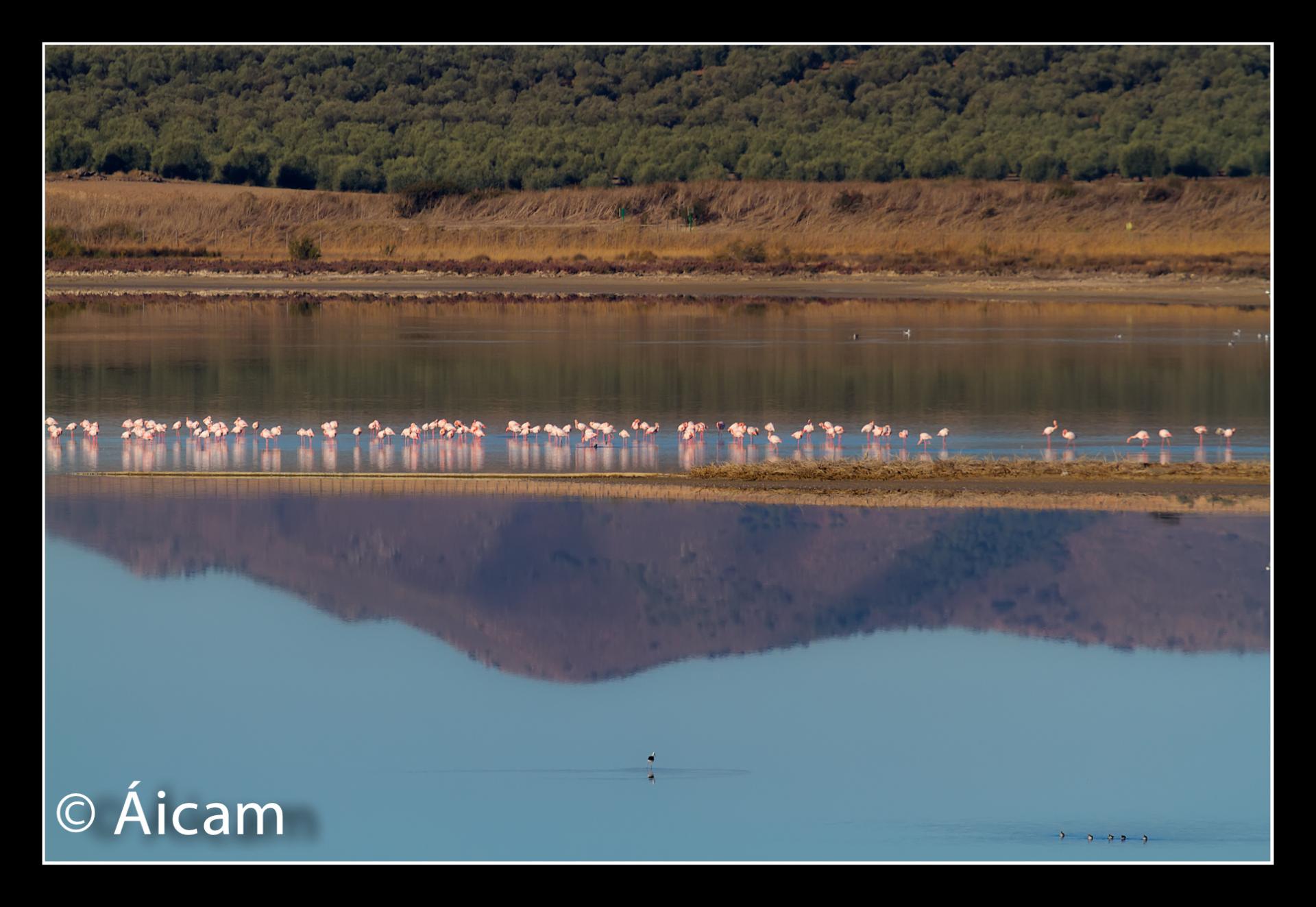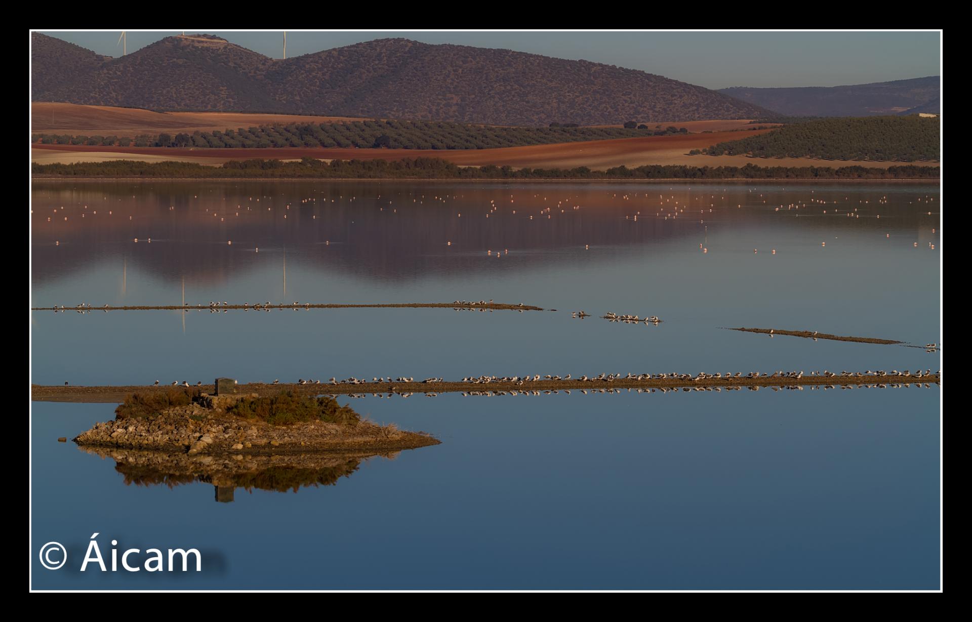 La verdad es que no puedo quejarme con lo que la Naturaleza me ofreció. Por la mañana intenté realizar fotografías de aves en la Laguna de Fuente de Piedra, pero estas estaban tan lejos que casi no podía distinguirlas con el tele. Así que aproveché las luces de la mañana que tenía, para realizar fotos de "paisaje" donde las aves formaban parte del mismo.